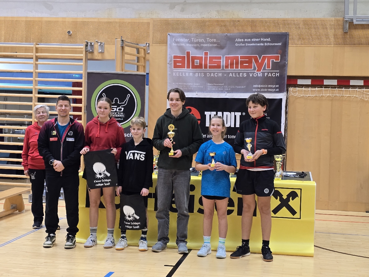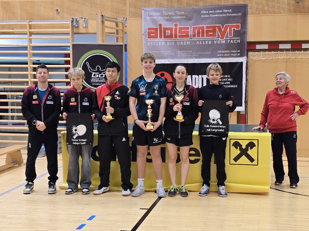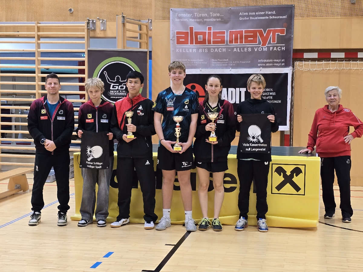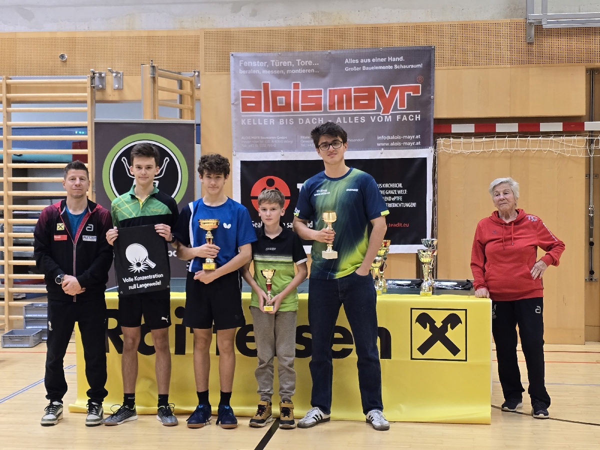 Besonders stark präsentierte sich der TTC Raiba Kirchbichl, der mit 21 Teilnehmern nicht nur zahlenmäßig, sondern vor allem sportlich überzeugte. In der Elite Klasse A feierte Lennox Kapfinger einen souveränen Turniersieg ohne Niederlage. Clara Kurzthaler belegte den ausgezeichneten zweiten Platz und musste sich im gesamten Turnierverlauf lediglich ihrem Vereinskollegen Lennox geschlagen geben. Liam Welzel rundete das starke Ergebnis mit einem hervorragenden fünften Rang ab und überzeugte insbesondere in der ersten Gruppe mit sehr konstanten Leistungen.