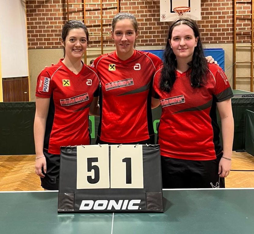 Die Begegnung mit Bruck an der Mur 1 forderte Nervenstärke: nach 2 souveränen Siegen von Teresa und einem Sieg von Michelle stand es 3:3. Im entscheidenden Doppel bewiesen Teresa und Nicola starke Nerven und konnten 3:2 gewinnen!
