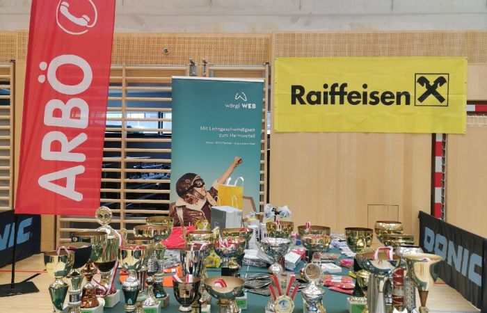 Der gut gefüllte Gabentisch, alle Teilnehmer erhielten entweder Pokal und Medaille oder einen Sachpreis die vom neu gewählten Tiroler Tischtennis Verbands Präsidenten Michael Enders verteilt wurden, ließ die Freude bei den Jugendlichen deutlich erkennen und ist vielleicht ein Ansporn für die Zukunft, denn erst kommt die harte Arbeit, dann der Erfolg!