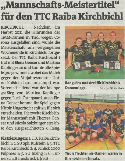 Tiroler Mannschaftsmeisterschaft Damen